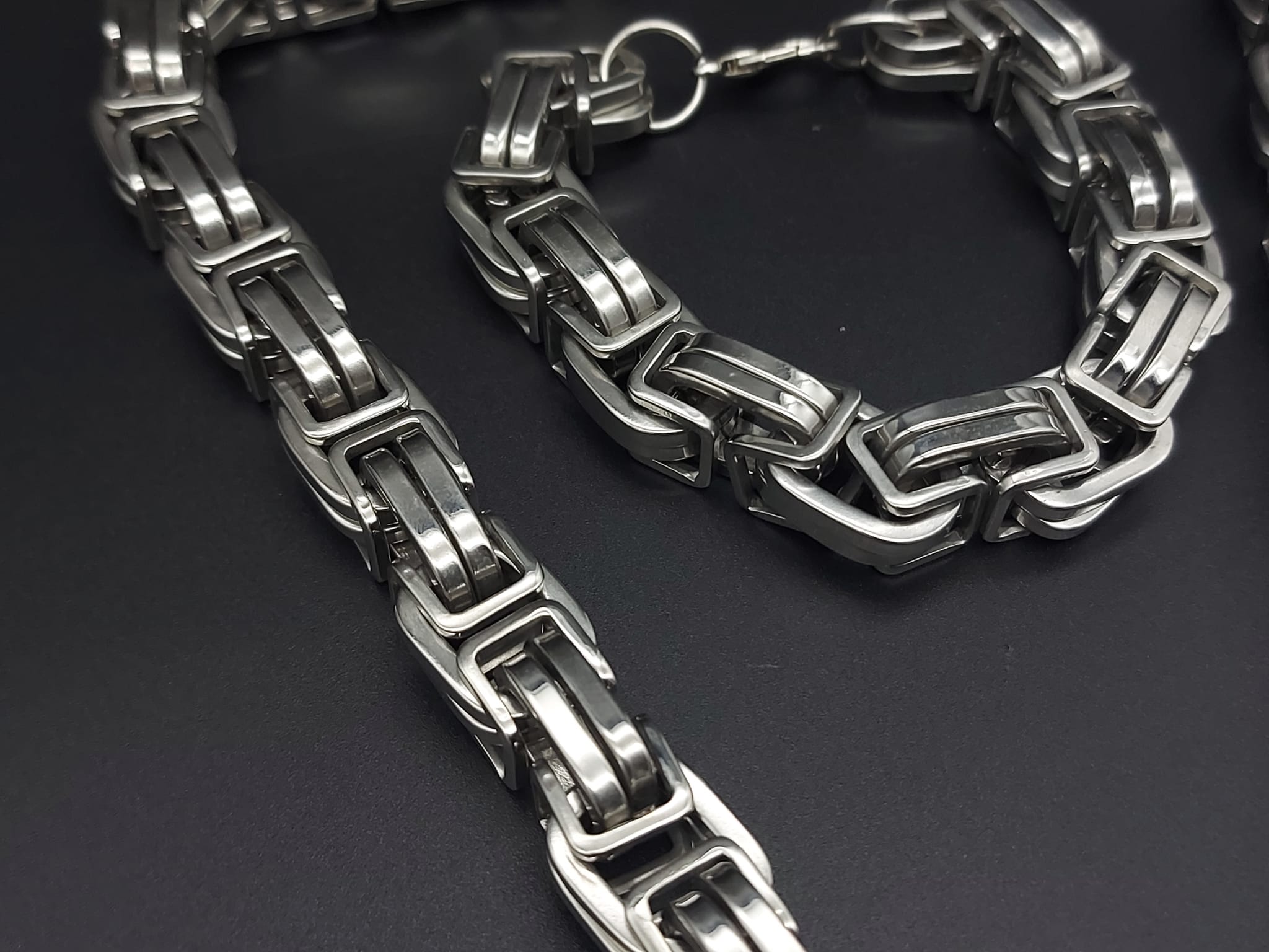 Hochwertige silberne XXL-Königskette mit Armband aus Edelstahl