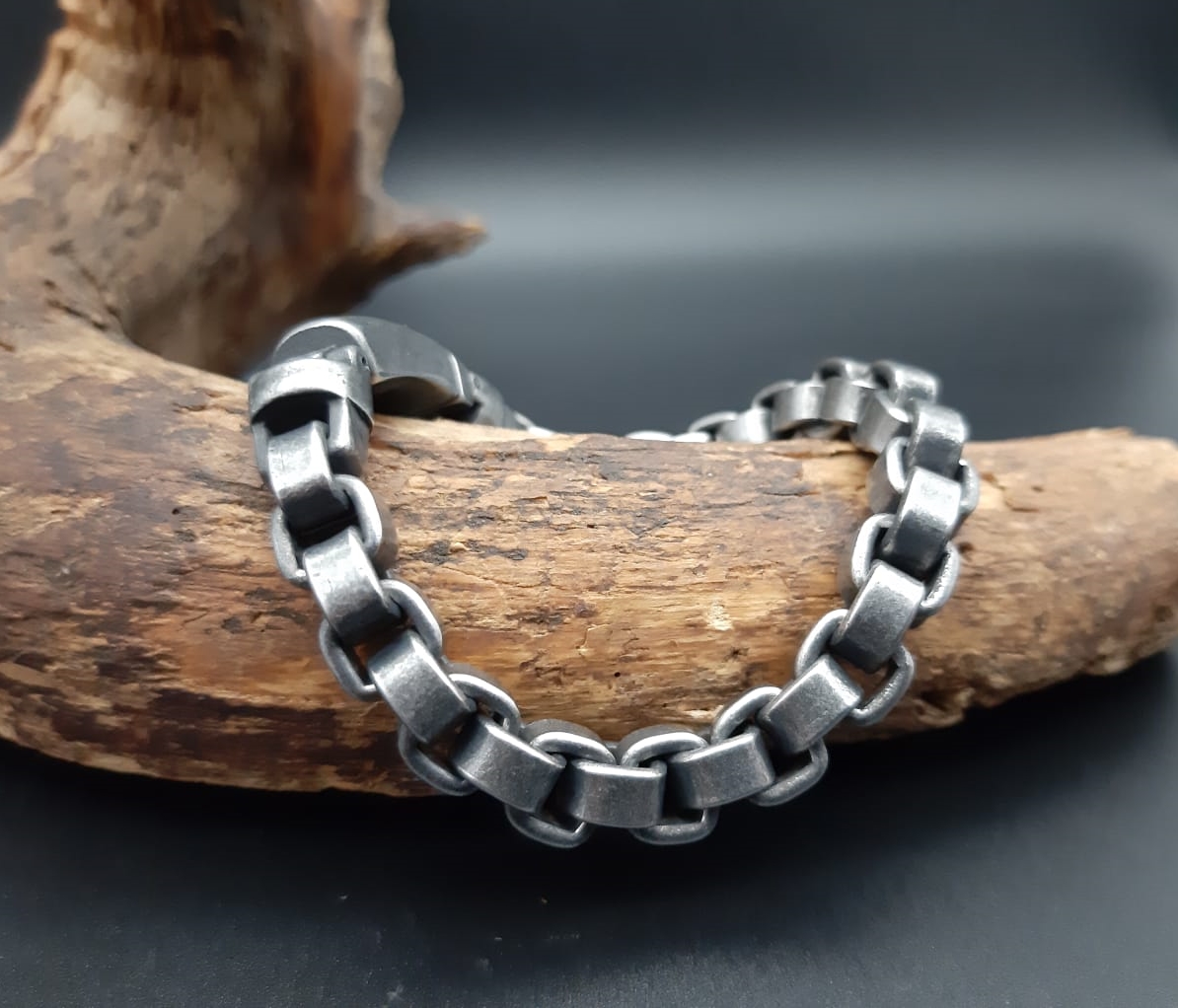 Massives Armband als Ankerkette aus graufarbenem Edelstahl