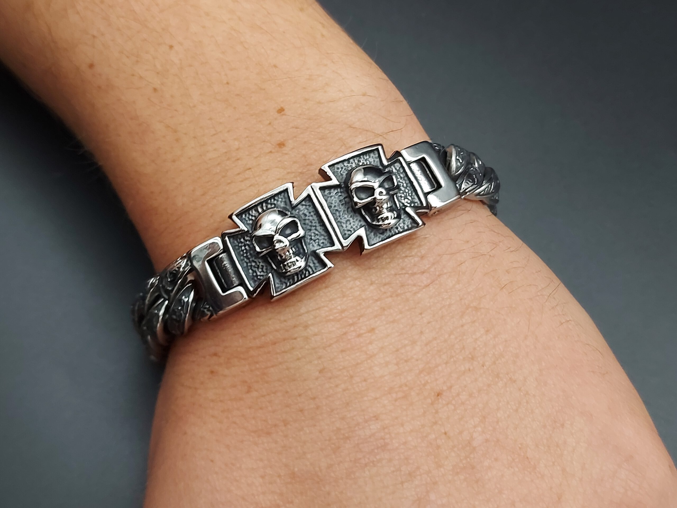 Panzerarmband/ Edelstahlarmband mit eisernem Kreuz und Totenkopf