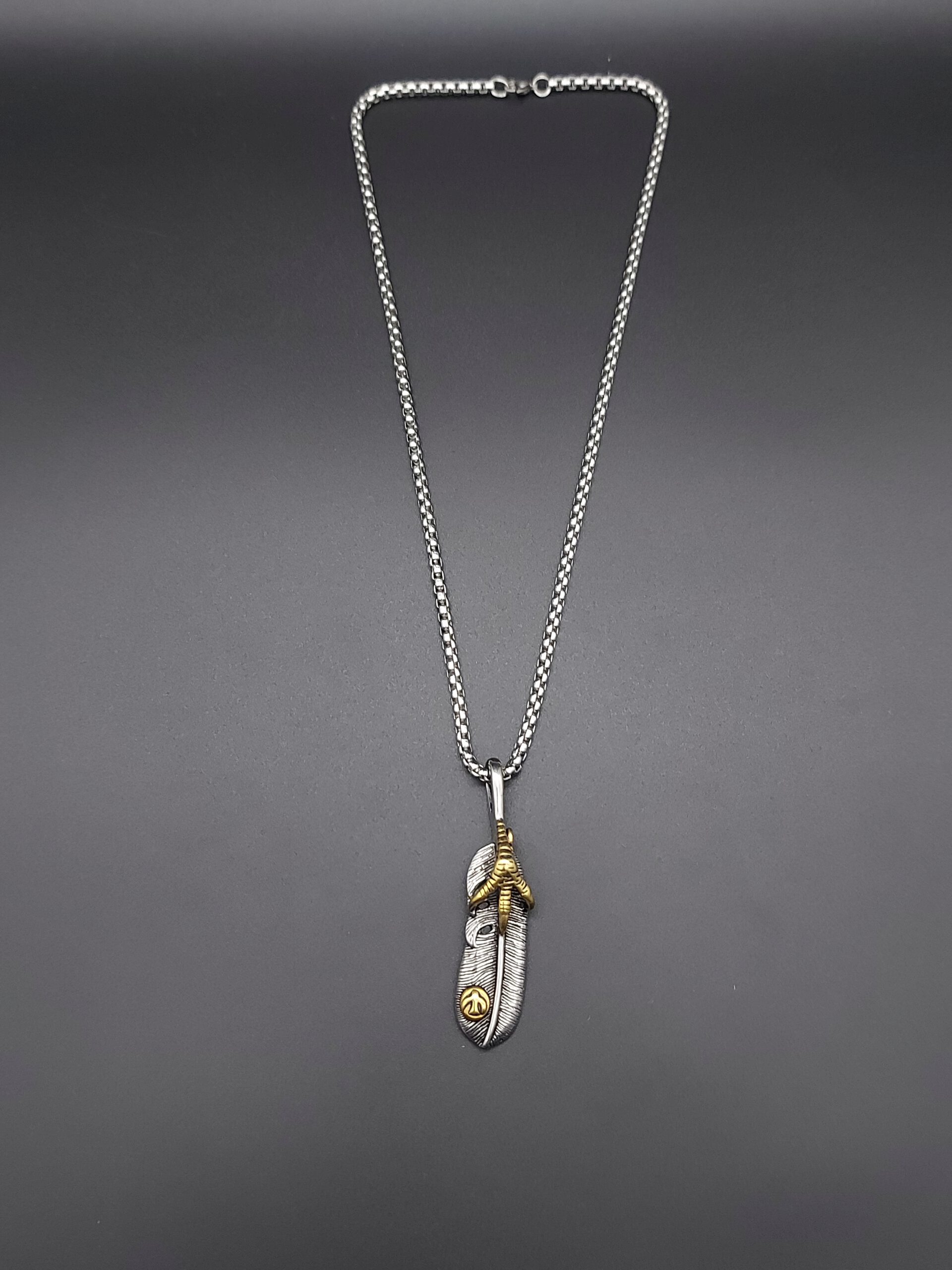 Silberne Feder mit Kralle in goldfarben – Anhänger/Kette Halskette