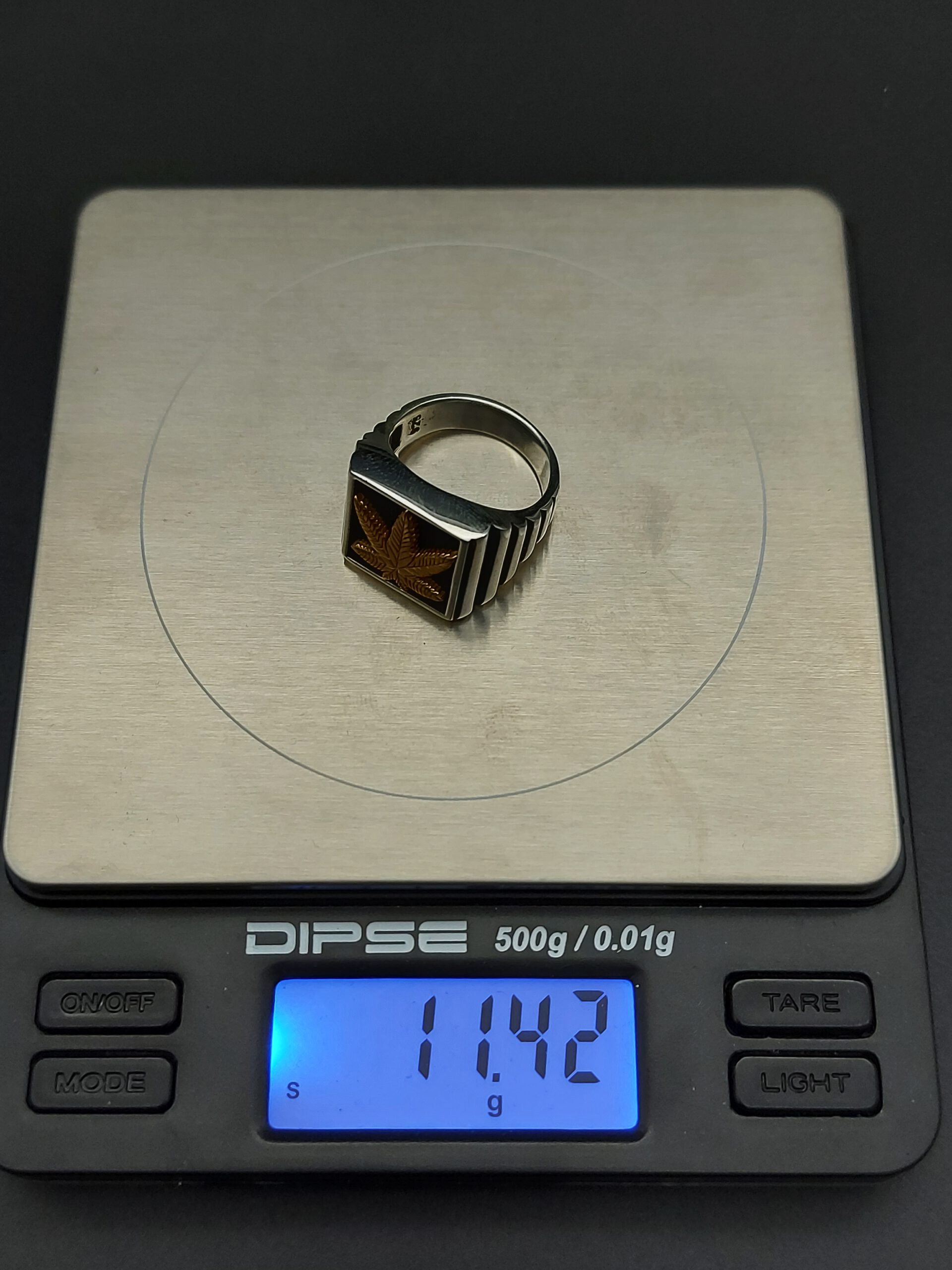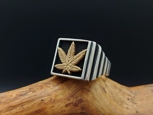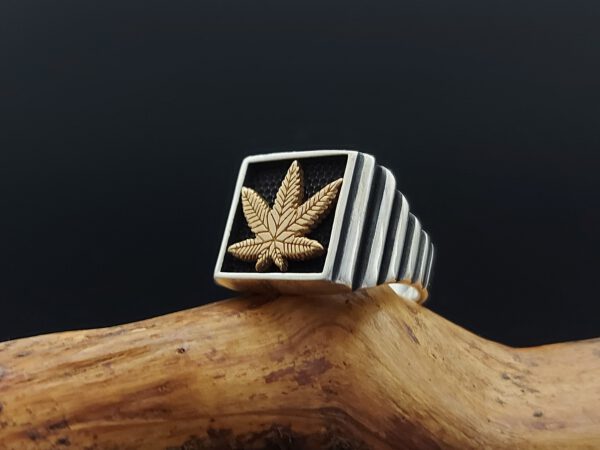 Hanfblatt in goldfarben – Ring aus massivem Sterlingsilber