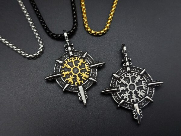 Kompass mit Vegvisir wahlweise in gold/silber oder silber – Anhänger/Kette Halskette