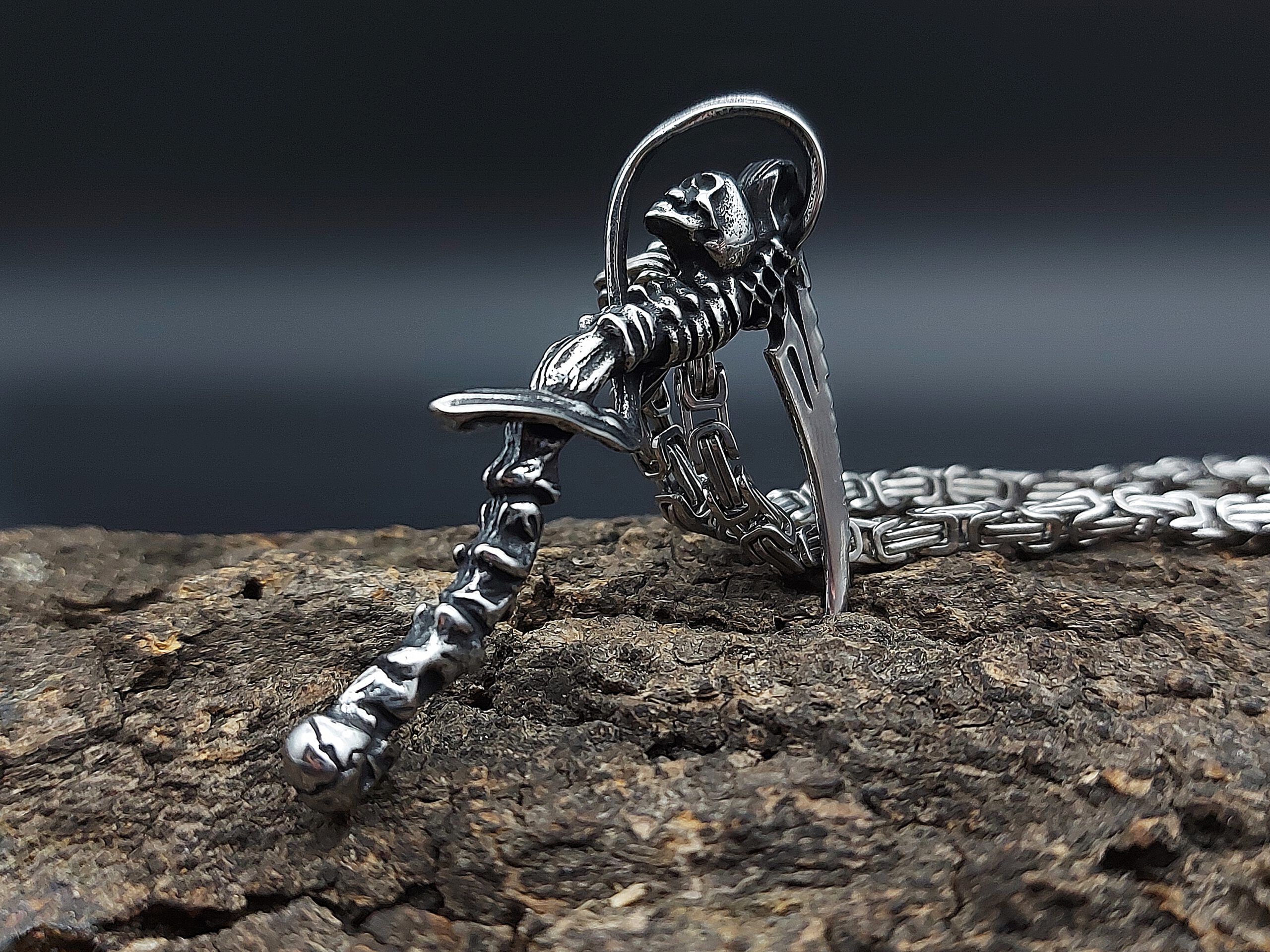 Sense mit Totenkopf – Anhänger/Kette Halskette