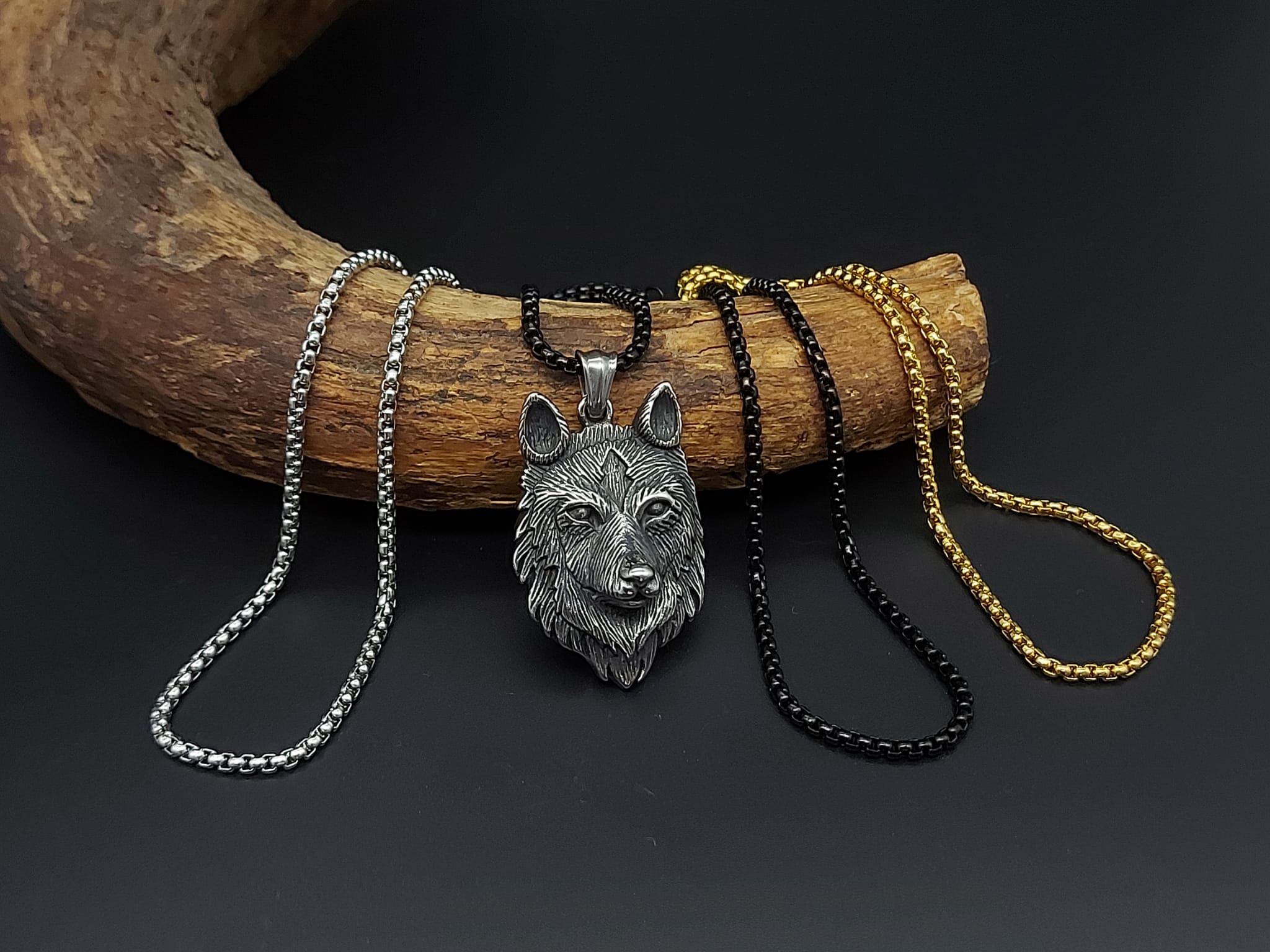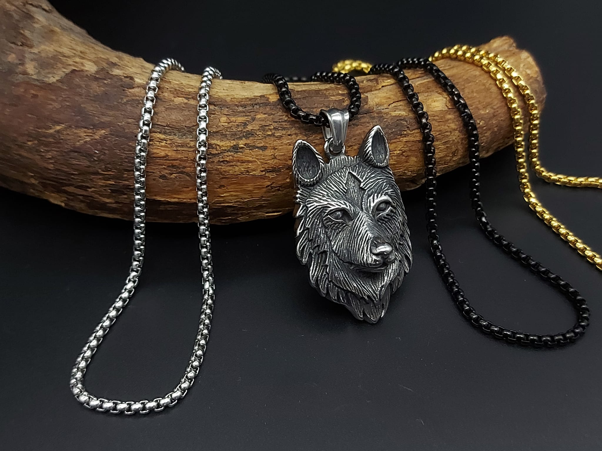 Wolfskopf – Anhänger/Kette Halskette