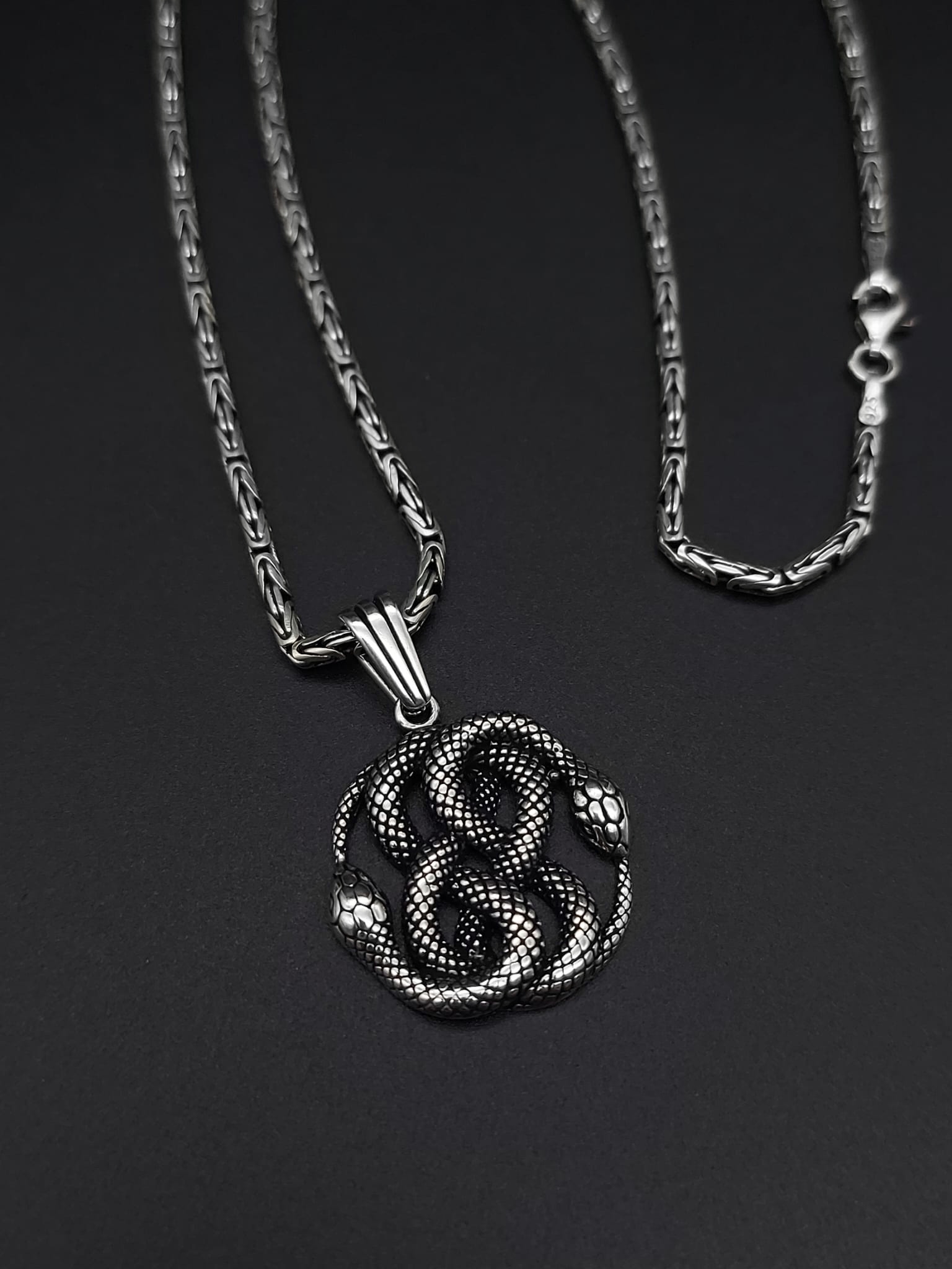 Zwei Schlangen, in sich verwunden – Anhänger/Kette Halskette