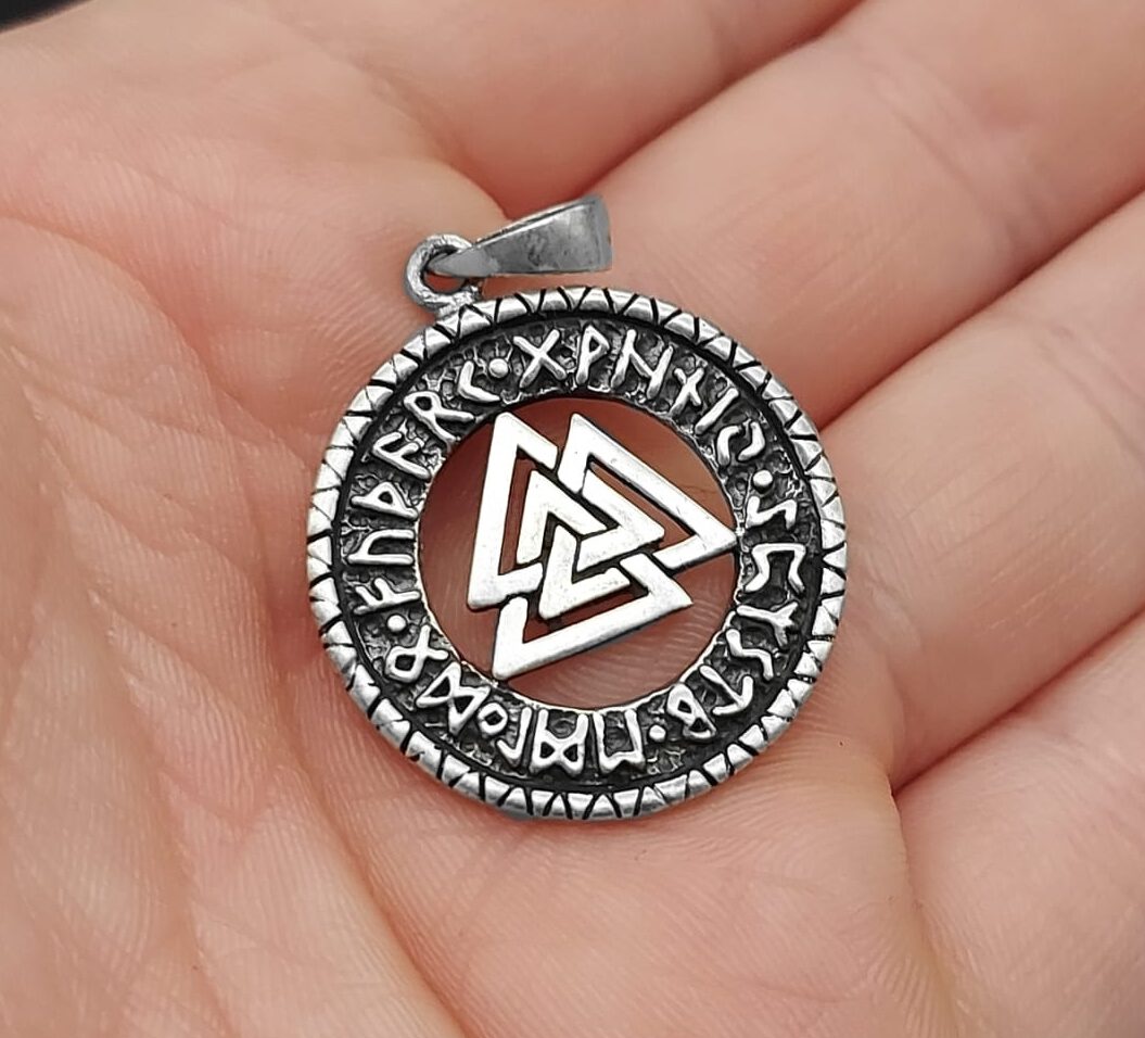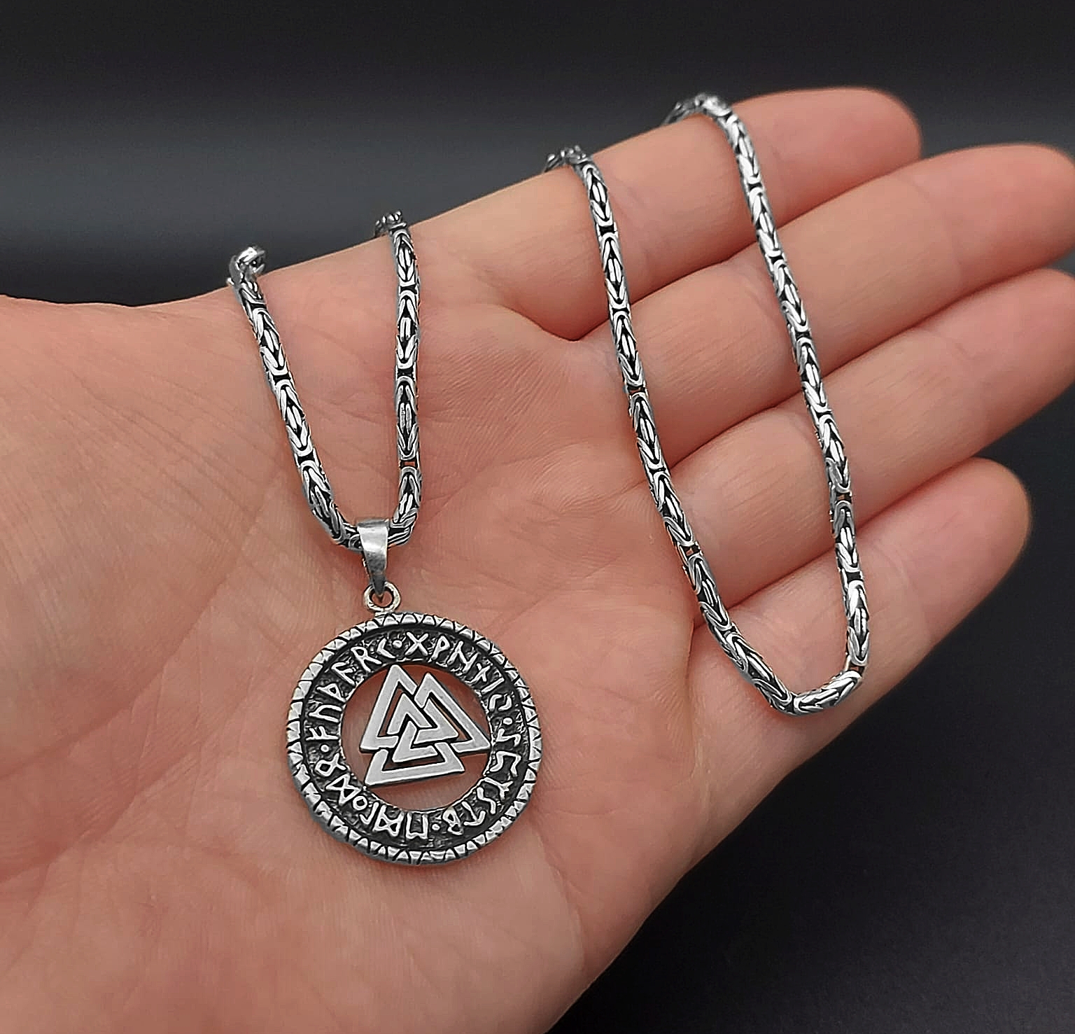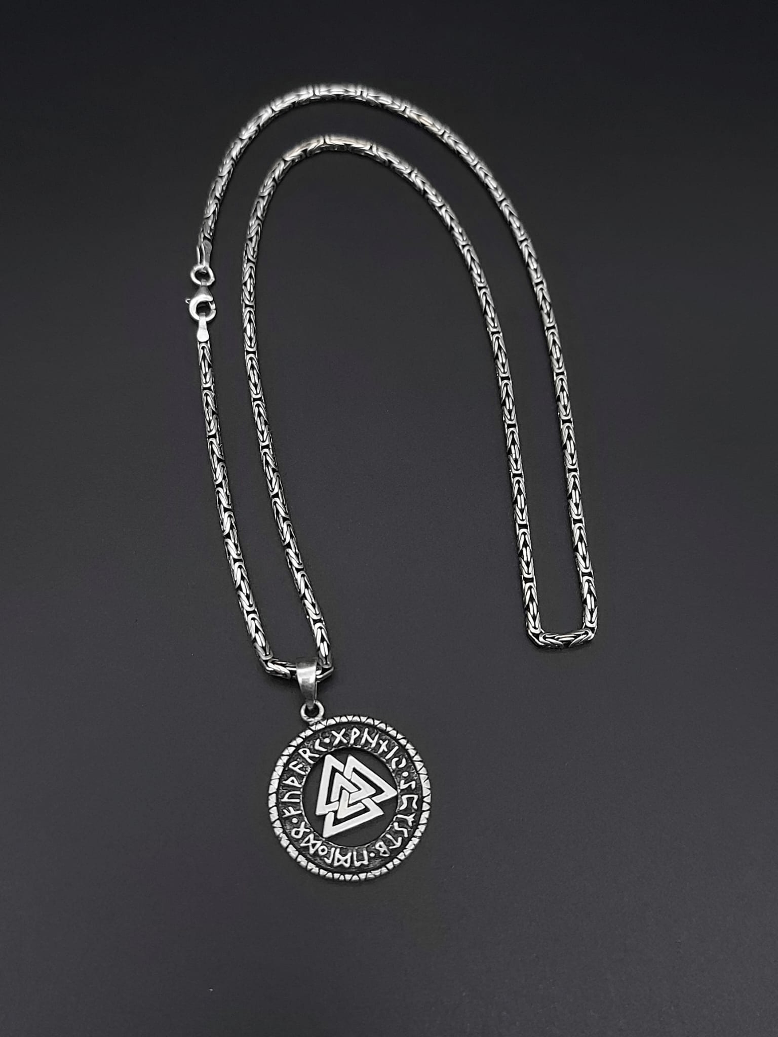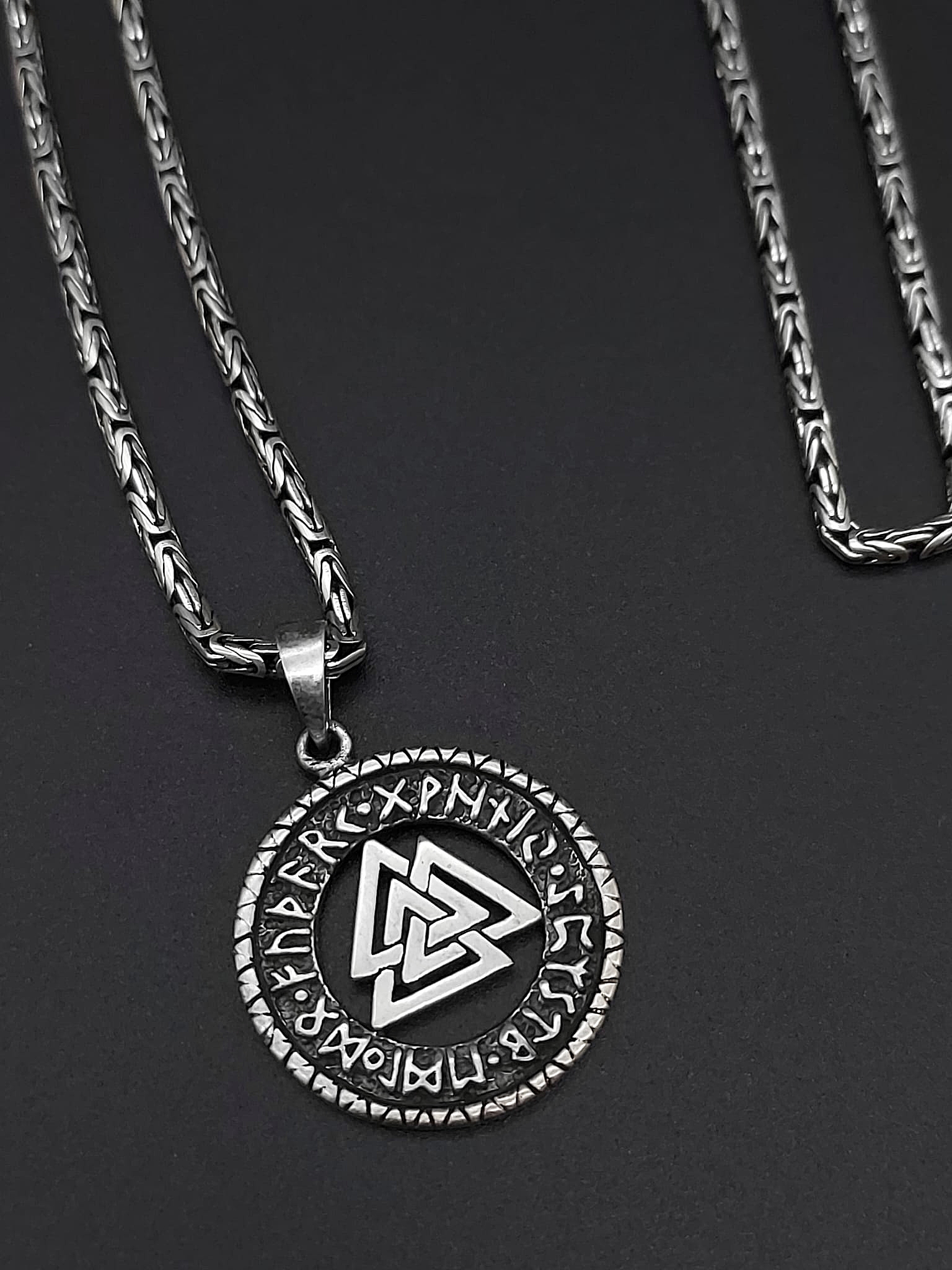 Valknut mit Runenschrift – Anhänger/Kette Halskette